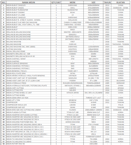 Daftar Inventaris Mesin